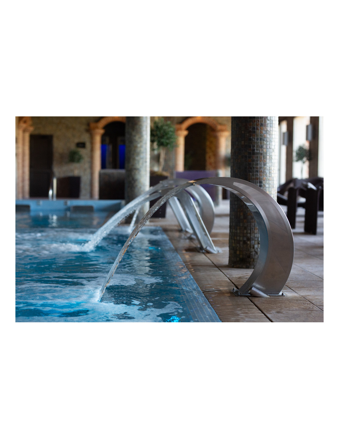 90-minute spa circuit for 2 persons. Circuit: 6 different types of sensation showers, foot bath, dynamic swimming pool with swan neck fountains, hydromassage bubble beds, waterfalls, cannon and Jacuzzi, hot and cold bath, steam bath with chromotherapy and aromatherapy, Finnish sauna and outdoor views. Relaxation area with heated stone beds and chromotherapy.